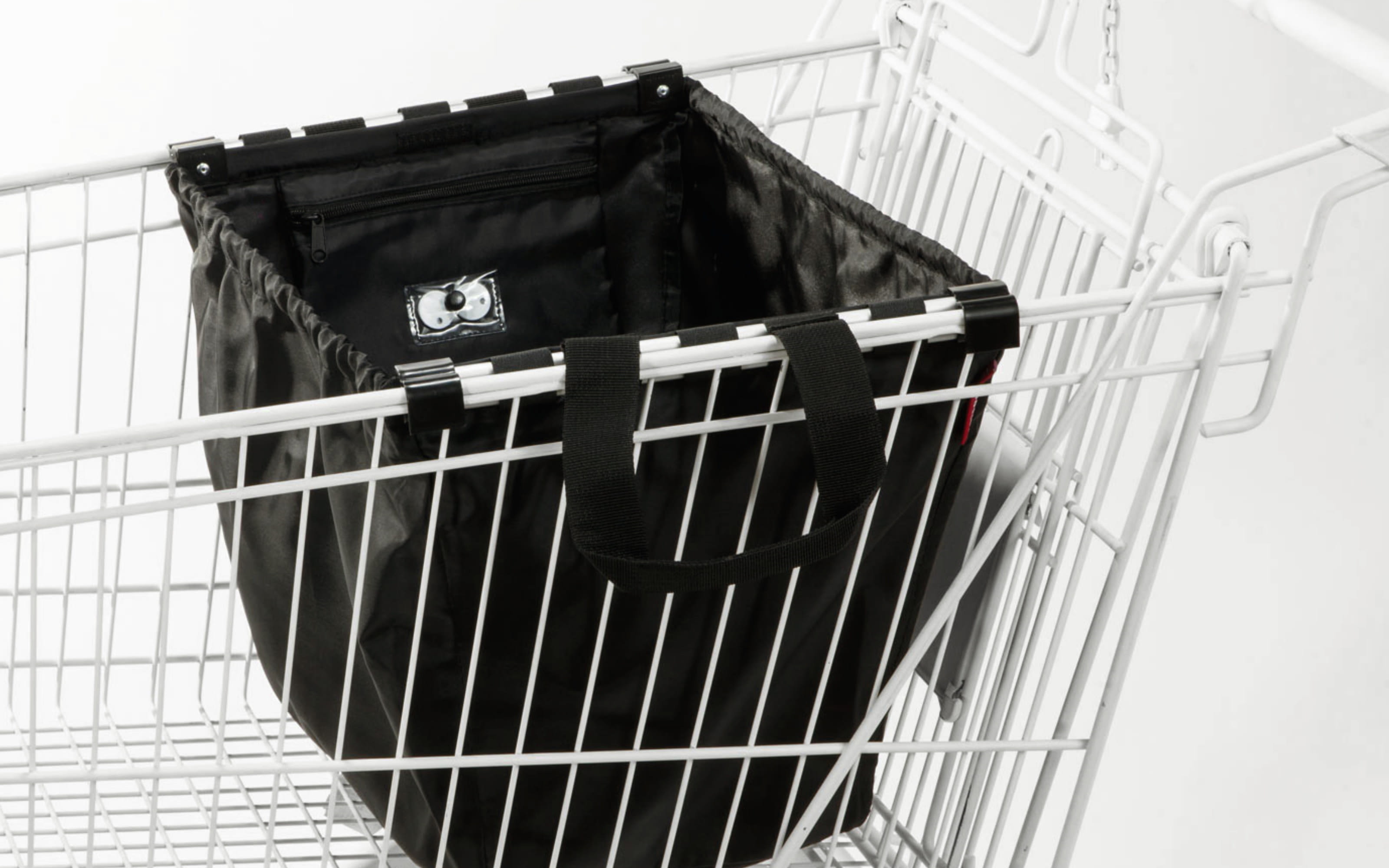 Die Easyshopping Bag lässt sich ganz einfach durch seine 2 stabilen Einhängestangen in den Einkaufswagen hängen.