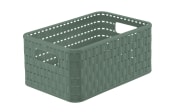 Aufbewahrungskorb mit Rattan-Nachbildung in mistletoe green, vielseitig einsetzbar ob für das Bad, Bücherregal oder Kinderzimmer, platzsparend stapelbar.