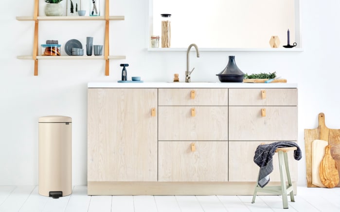 Der 30-Liter-Treteimer in beige besticht durch sein kultiges Design und ist zudem ein zuverlässiger Arbeiter.
