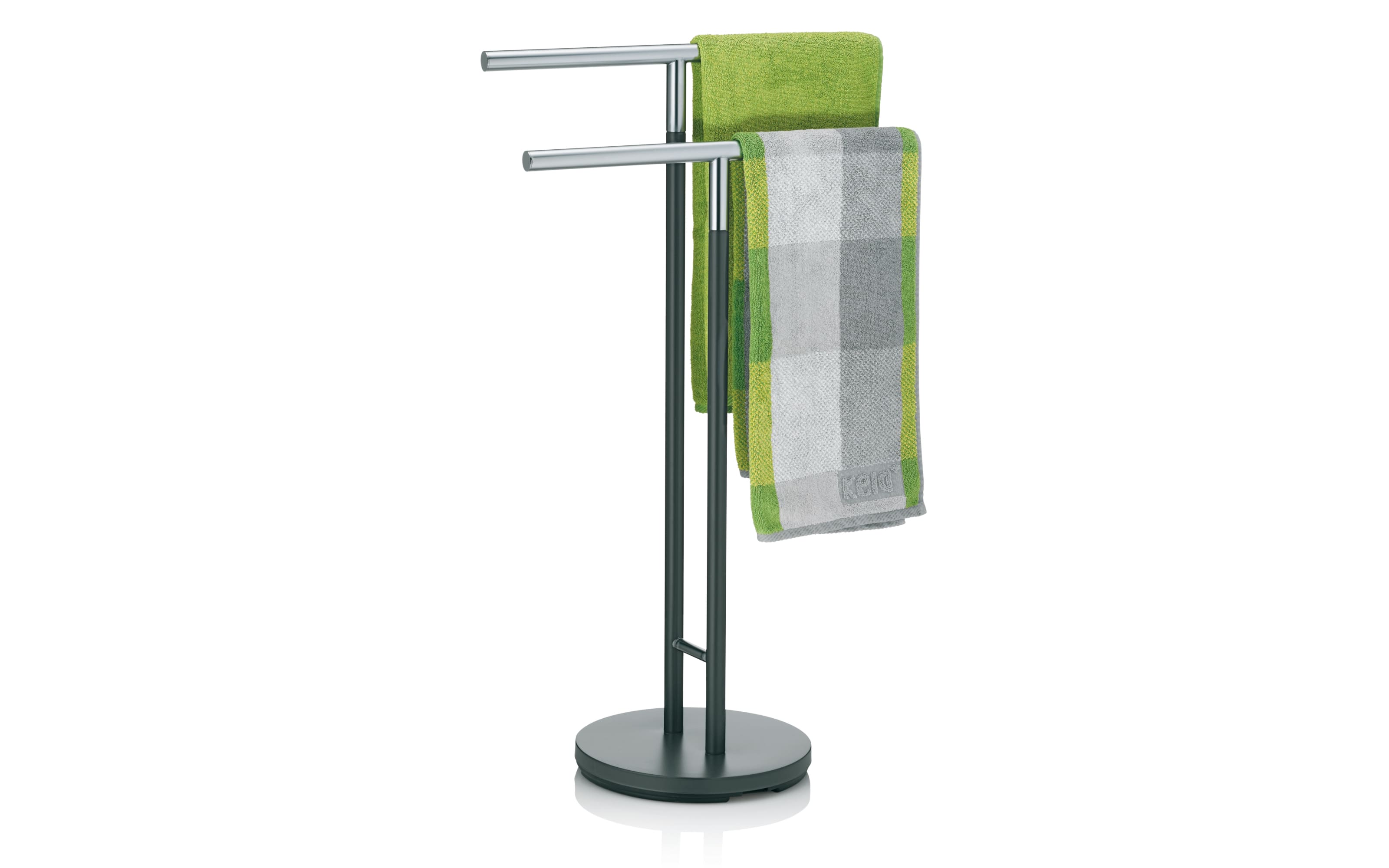 Dieser Handtuchhalter aus Metall in anthrazit Pulverbeschichtet, Absetzung in chrom Matt ist ein eleganter und ein idealer Helfer im Bad, die 2 Stangen geben dem Halter einen festen Stand.