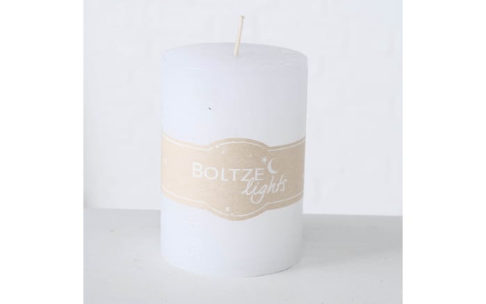 Diese Stumpenkerze aus Wachs in weiß ist ideal für die dunkele Jahreszeit, die Kerze zaubert eine wohnliche Wohnatmosphäre