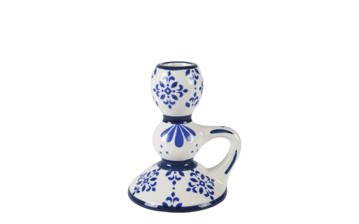 Kerzenhalter in blau und weiß. Gefertigt aus Steingut.