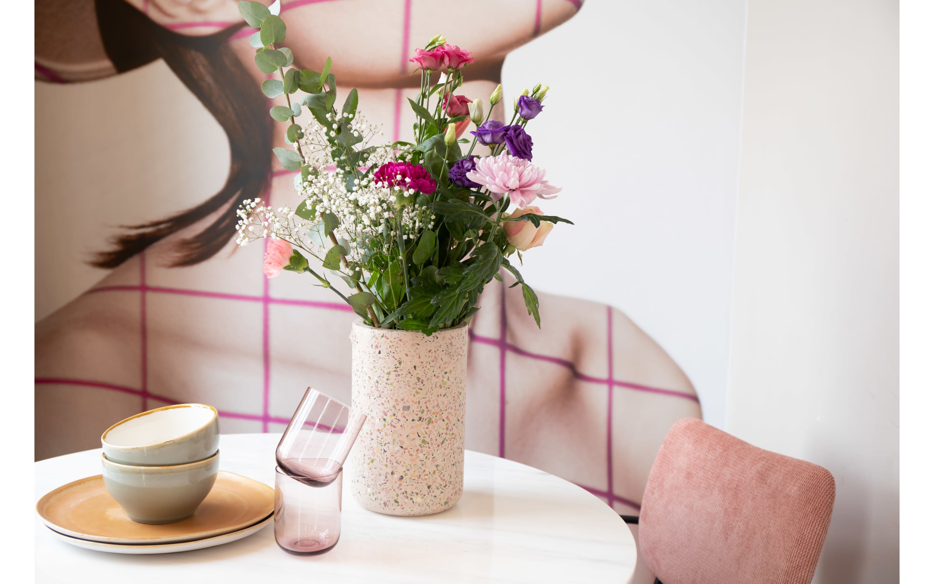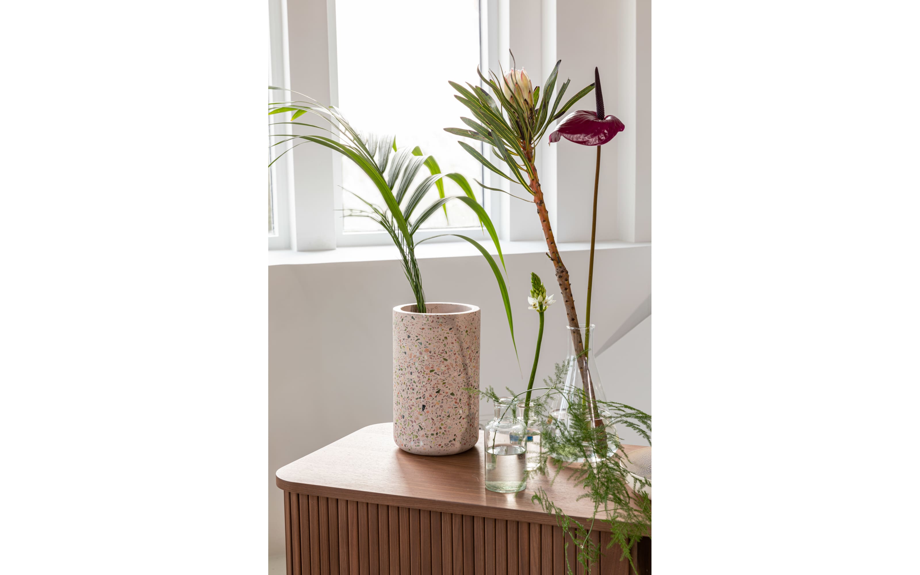 Die Vase aus 100 % Terrazzo verschönert jeden Raum und ist ein Must-have.