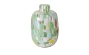 Diese Vase mit durchgefärbten Glas in grün ist eine raffiniertes Dekostück auch ohne Blumen.