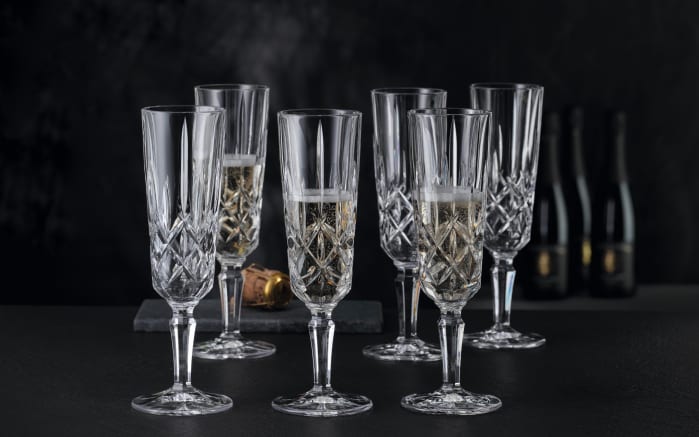 Das elegante 6-teilige Champagnerglas Set aus Kristallglas mit Schliff glänzt im Alltag oder zu Festlichkeiten, genießen Sie ihr Getränk aus diesen Champagnergläsern.