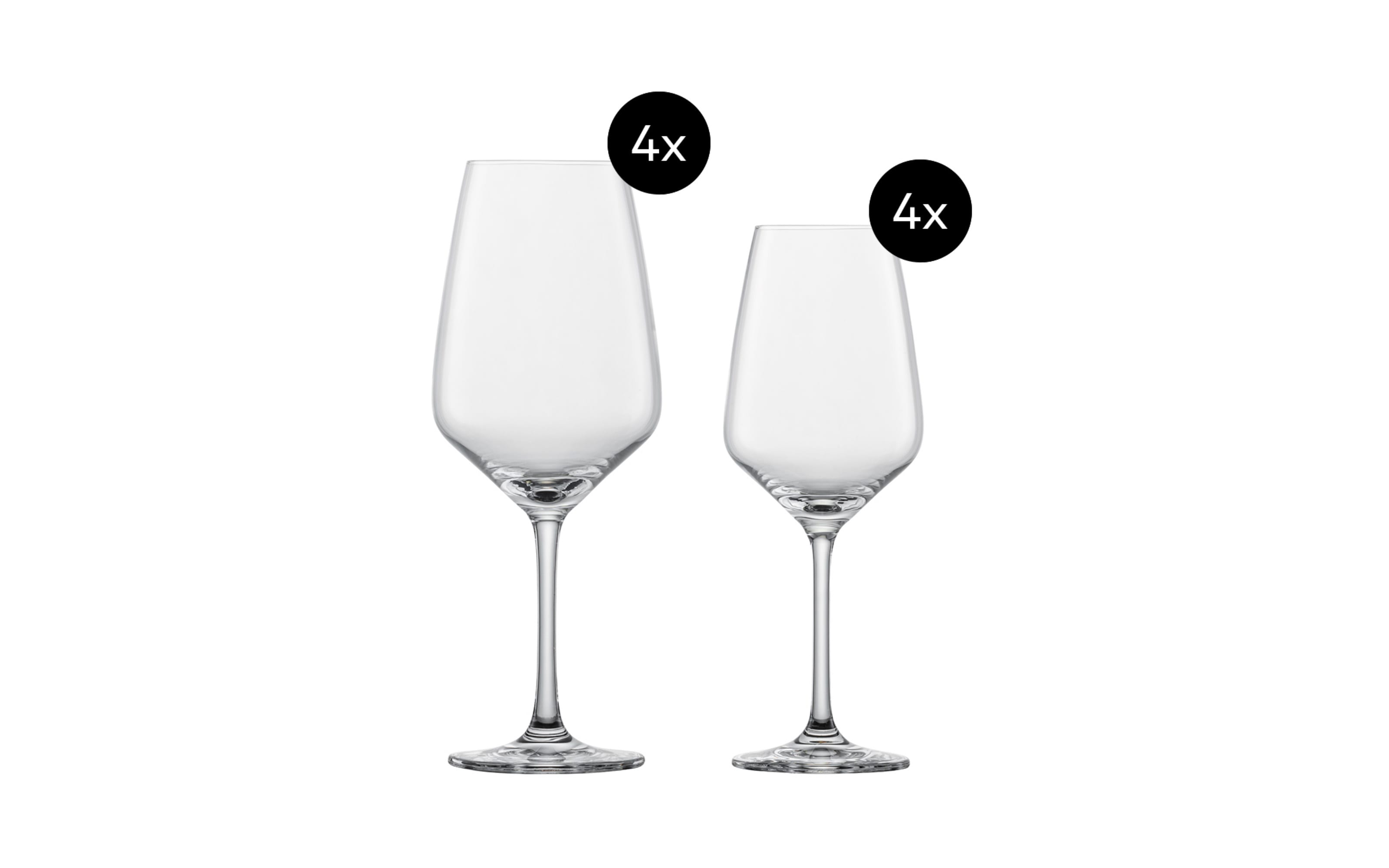 Das 8-teilige Gläserset ist Dein Begleiter für alle Gelegenheiten. Das Set besteht aus 4 Rotweingläsern und 4 Weißweingläsern.