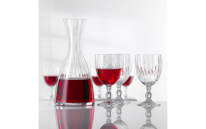Dieses elegante 7-teilige Weinset eignet sich ideal für einen stimmungsvollen Abend mit Freunden oder der Familie. Das Set besteht aus 6 Weingläsern, 1 Karaffe. Das elegante und zeitlose Design sorgt für ein edles Flair auf jeder Tafel.