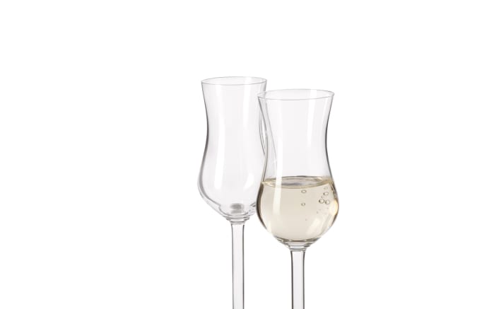 Ausführung aus transparentem Glas mit nach oben hin verjüngendem Kelch, spülmaschinenfest.