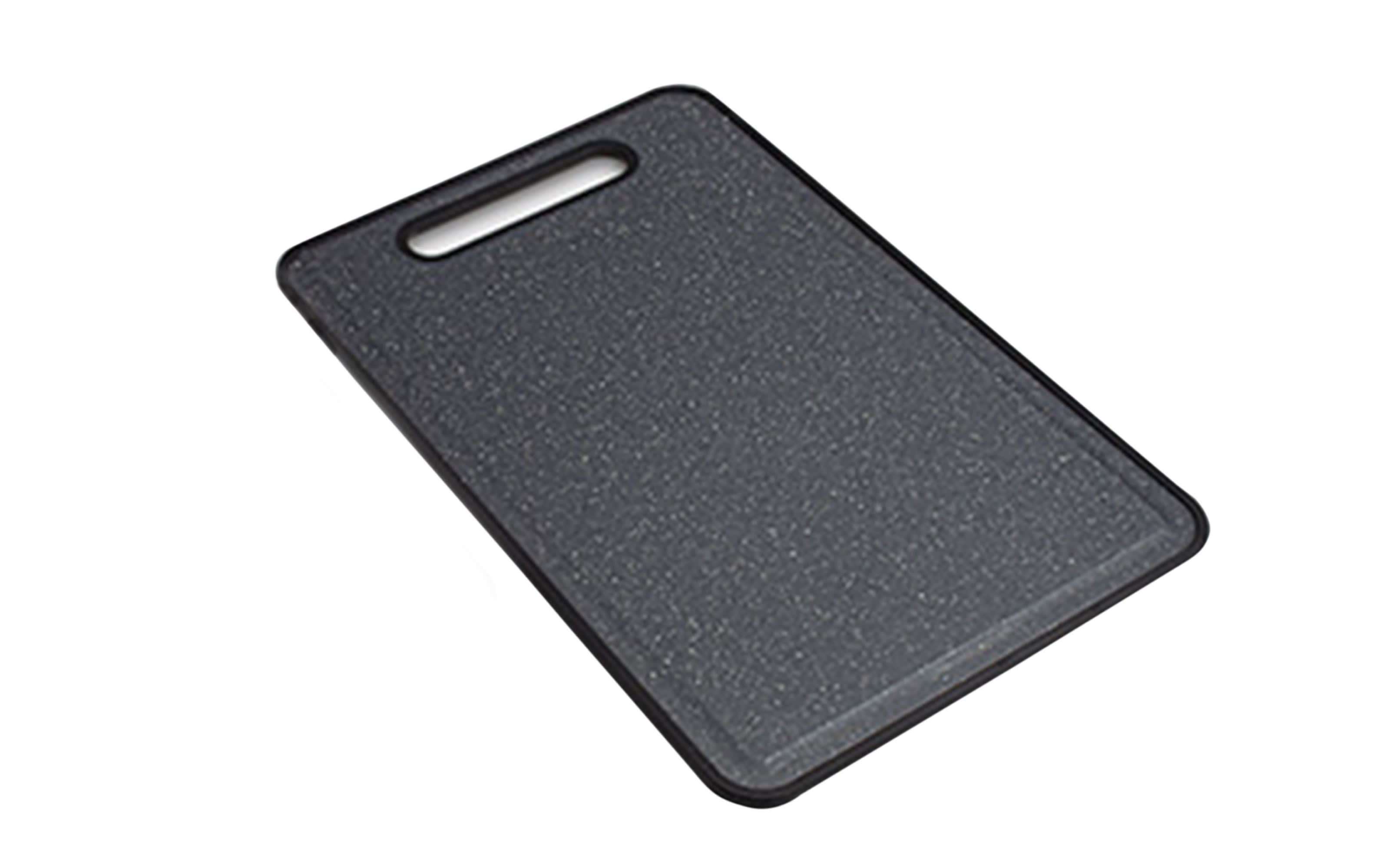 Dieses Schneidebrett aus Kunststoff in schwarz marmoriert ist der ideale Küchenhelfer und vielseitig einsetzbar, sein TPR-Rand verhindert das Überlaufen von Fleischsaft oder Obstsaft. Breite x Länge ca. 30 x 45 cm.