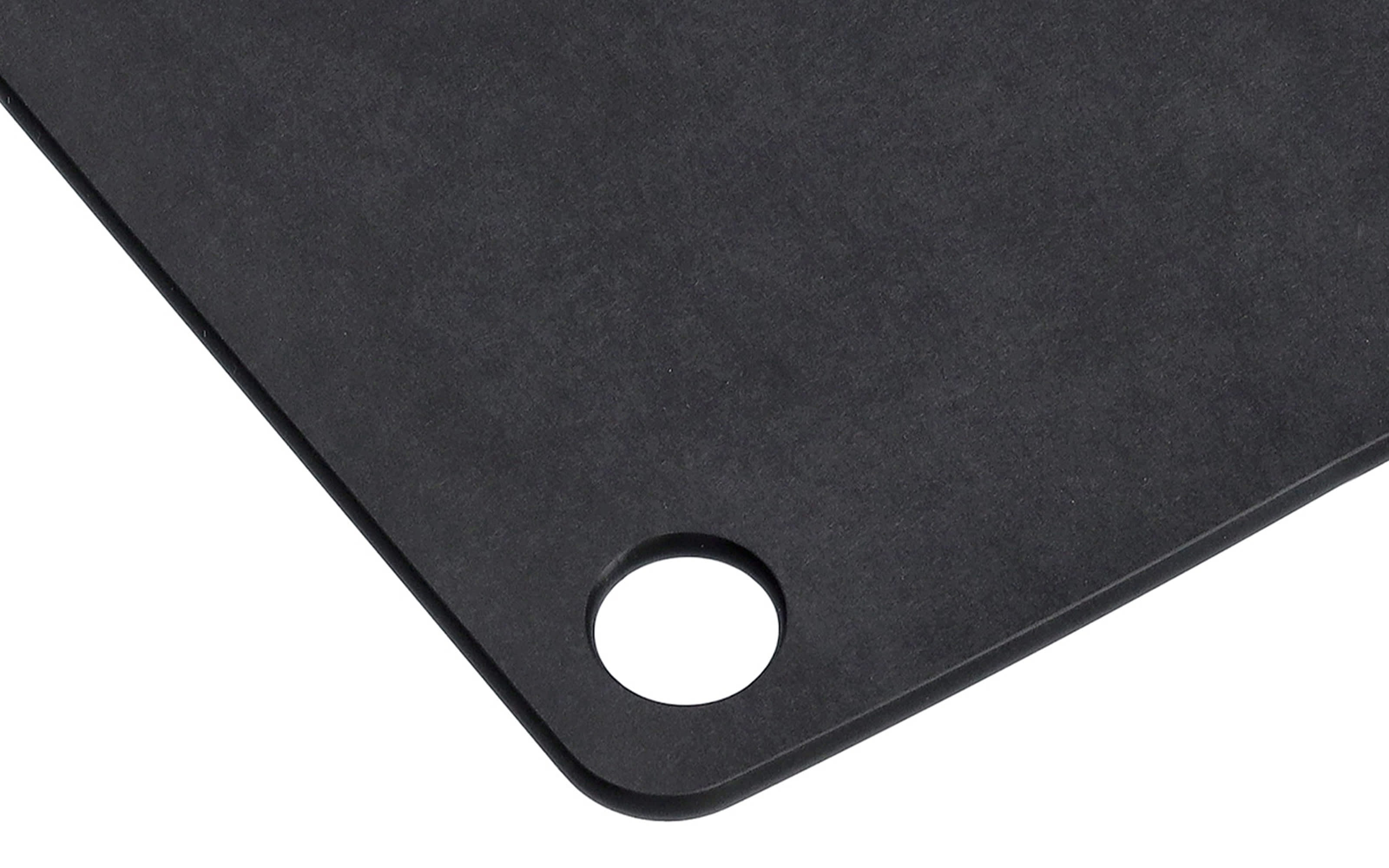 Stylisches Schwarz trifft auf natürliches Material. Die Basis des Bretts besteht aus Holz-Zellulosefaser und setzt ein Highlight im Bereich eco-friendly. Das Material ist außerdem extrem geschmacks- und geruchsneutral und zur Reinigung in der Spülmaschine bestens geeignet. Ein perfekter Helfer für den Alltag.