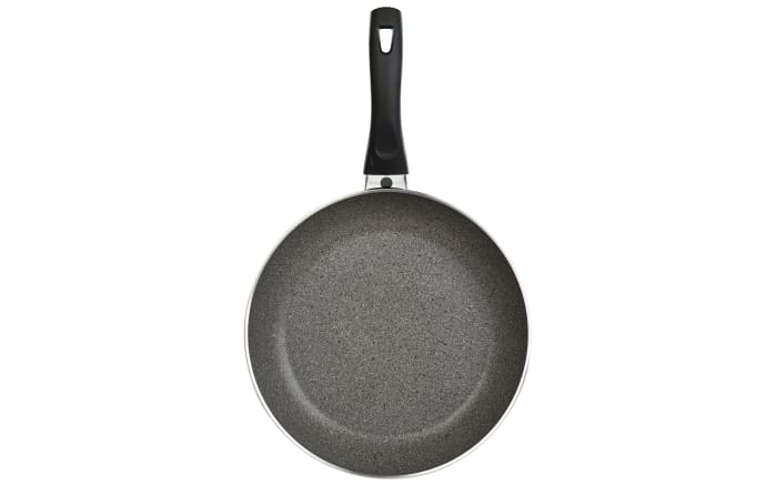 Flache Bratpfanne aus Aluminium in Stein-Nachbildung mit Granitium Antihaftversiegelung und Kunststoffstiel mit