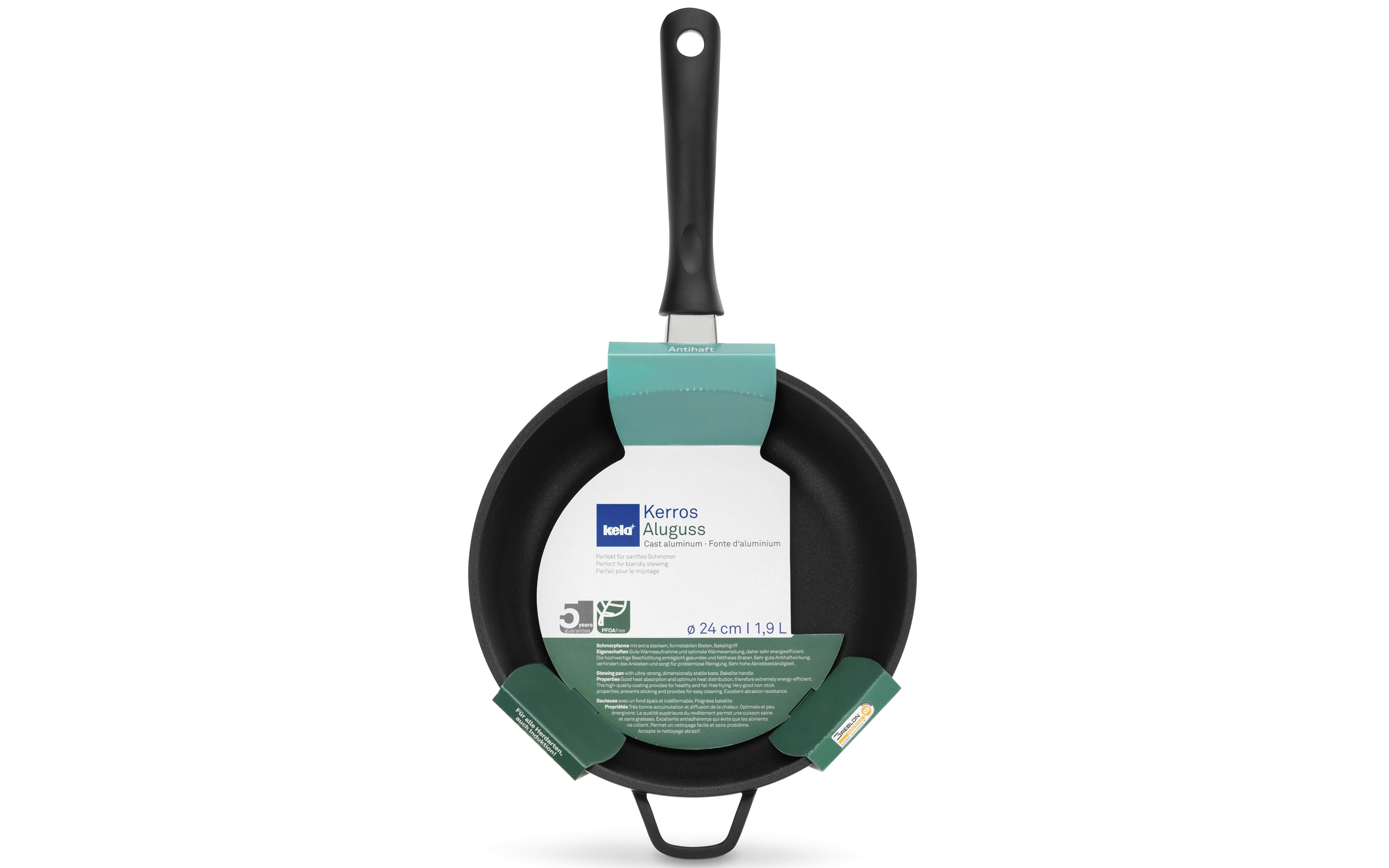 Schmorpfanne aus Aluguss in schwarz mit Greblon-Stonehenge Beschichtung, für alle Herdarten geeignet (auch Induktion).