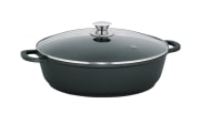 Servierpfanne mit Greblon C3 Beschichtung und passendem Glasdeckel, induktionsgeeignet.