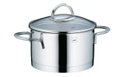 Ausführung aus rostfreiem Edelstahl 18/10 mit praktischen Griffen und Glasdeckel,