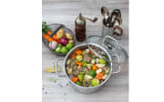 Dieser Fleischtopf aus Edelstahl darf in keinem Haushalt fehlen. Der Topf mit einem Glasdeckel ist für alle Herdarten geeignet, auch für Induktion und auch Backofen geeignet. Durchmesser ca. 16 cm.