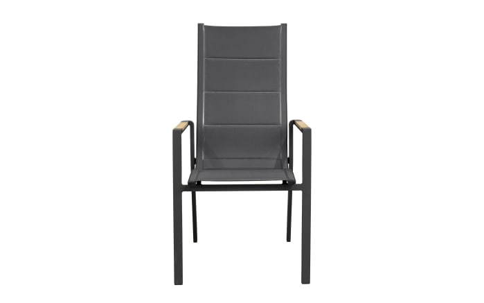 Ausführung mit Aluminiumgestell in anthrazit, Armlehnen mit Teakholz, Sitz- und Rückenlehne Textil in anthrazit, maximale Belastbarkeit 110 kg,