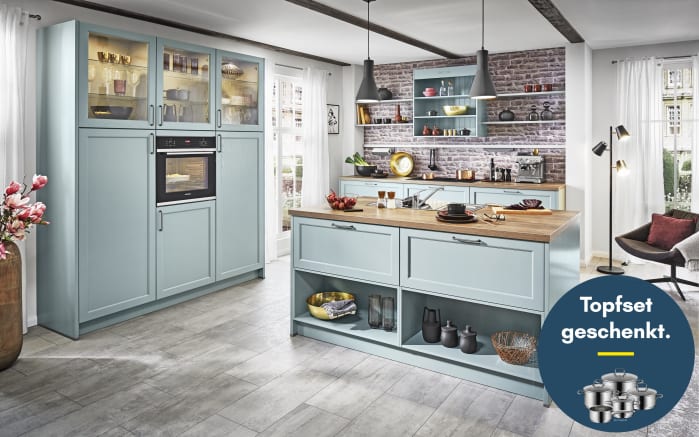 Einbauküche Bristol, Eukalyptus Esche Lack, inkl. Miele Elektrogeräte