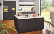 Ausführung Front und Korpus in grafitschwarz, Arbeitsplatte alpinweiß.