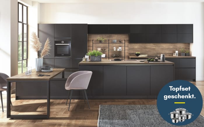 Einbauküche Esilia, graphitschwarz, inkl. AEG Elektrogeräte