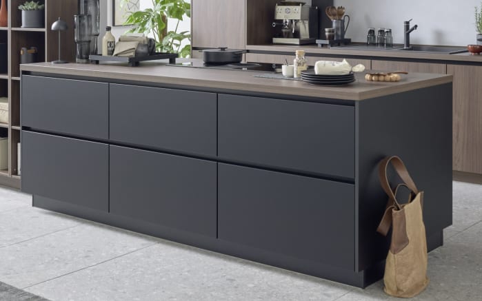 Einbauküche Stadum/Torna, schwarz/Nussbaum Nachbildung, inkl. Siemens Elektrogeräte