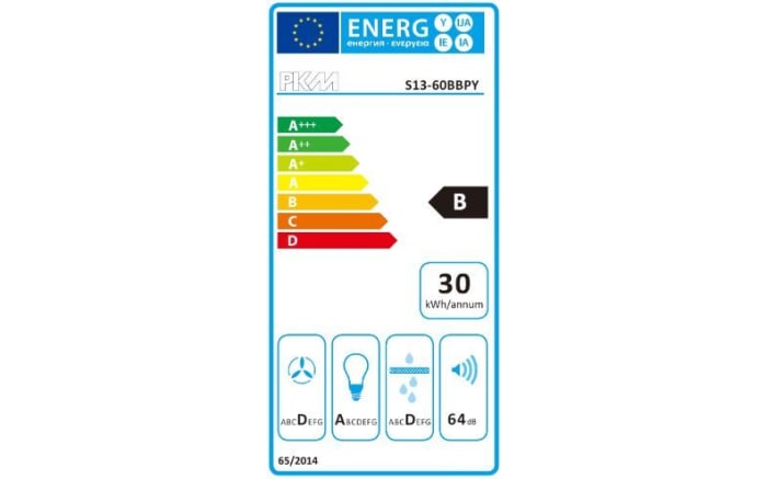- Amica Dunsthaube S13-60BBPY, Energieeffizienzklasse B, Energieeffizienz-Spektrum A+++ bis D