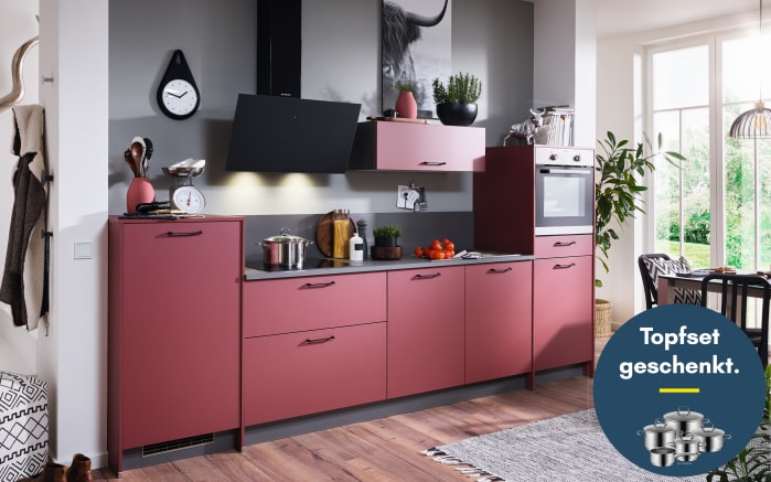 Einbauküche Wida, kaminrot, inkl. Elektrogeräte