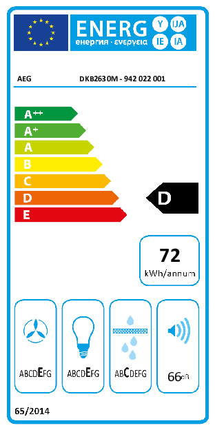 - AEG Dunsthaube DKB 2630 M Energieeffizienzklasse D, Energieeffizienz-Spektrum A++ bis E