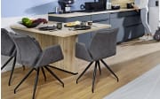 Schubkästen und Auszüge sind serienmäßig mit einer Reling ausgestattet. Stellmaß ca. 374 x 214 cm. Inklusive Elektrogeräte. Geräte-Abbildungen ähnlich.