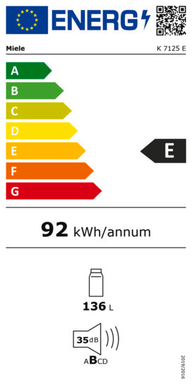 - Miele Kühlschrank K7125E, Energieeffizienzklasse E, Energieeffizienz-Spektrum A bis G