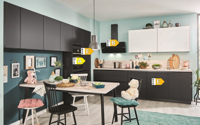 Einbauküche Esilia, grafitschwarz, inkl. Elektrogeräte