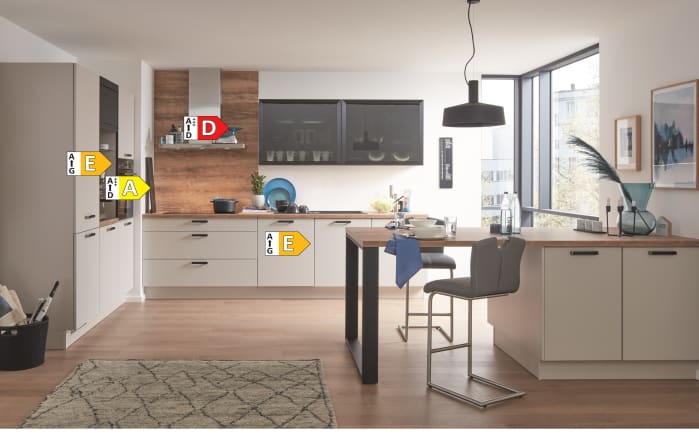 Einbauküche Esilia, sand ultramatt, inkl. Siemens Elektrogeräte