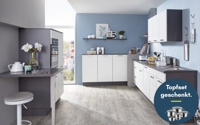 Einbauküche Laser, softmatt weiß, inkl. Elektrogeräte