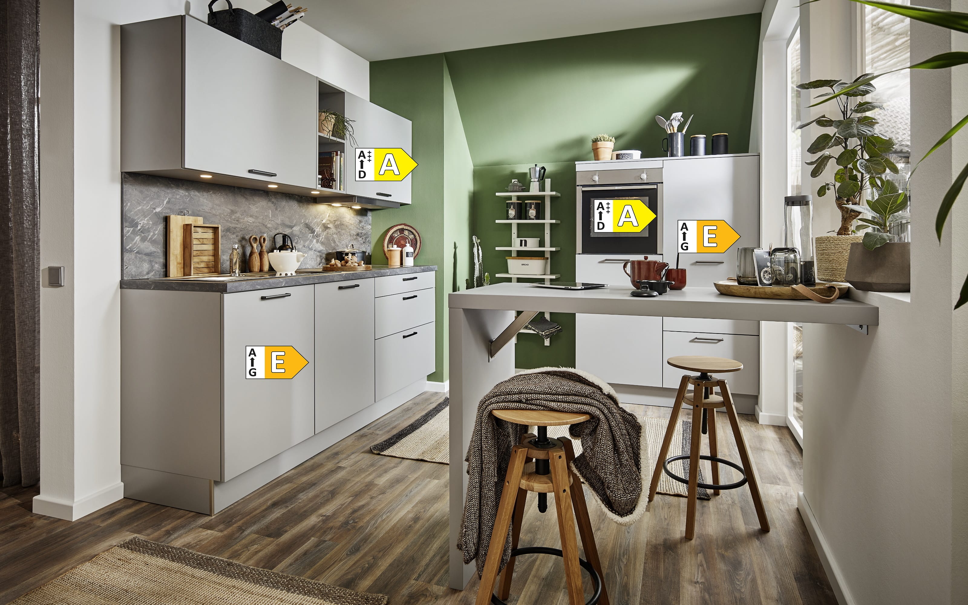 Einbauküche Uno, matt perlgrau, inkl. Elektrogeräte