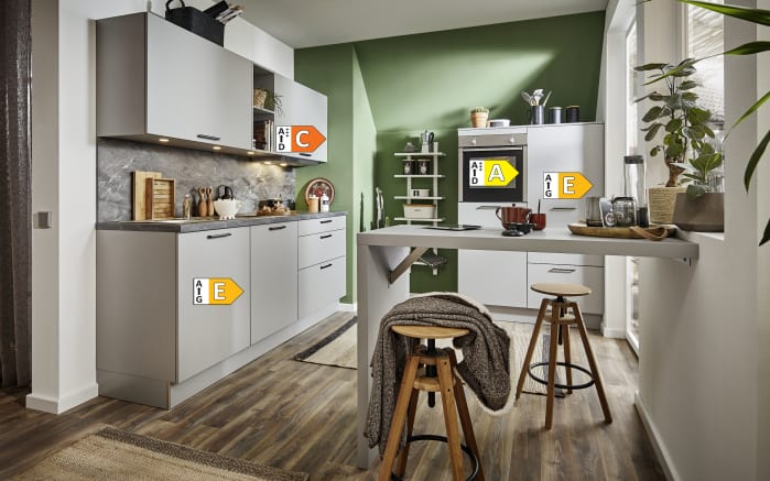 Einbauküche Uno, matt perlgrau, inkl. Siemens Elektrogeräte