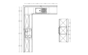 Front Lacklaminat alpinweiß Hochglanz. Stellmaß ca. 365 x 245 + 185 cm.