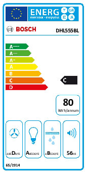 - Bosch Lüfterbaustein DHL555BL, der Energieeffizienzklasse C, Energieeffizienz-Spektrum A+++ bis D