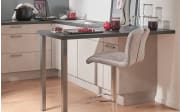 Ausführung Front und Korpus in weißbeton, Arbeitsplatte beton-schiefergrau.