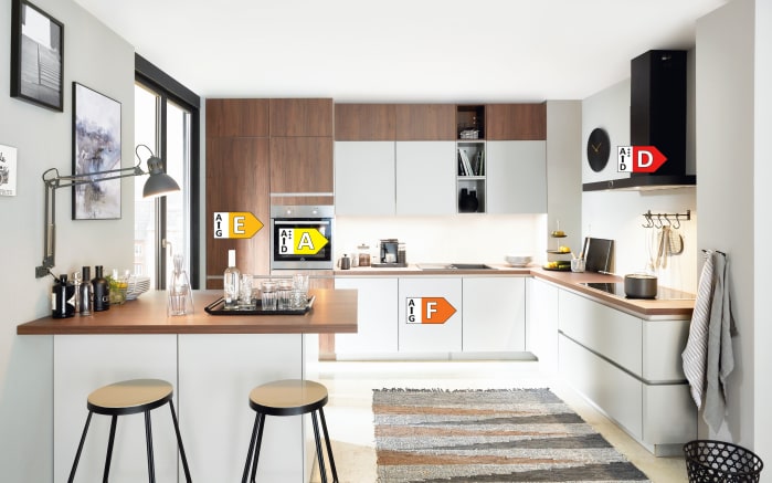 Einbauküche Rosian/Lenzen, Nussbaum Nachbildung/weiß, inkl. Siemens Elektrogeräte