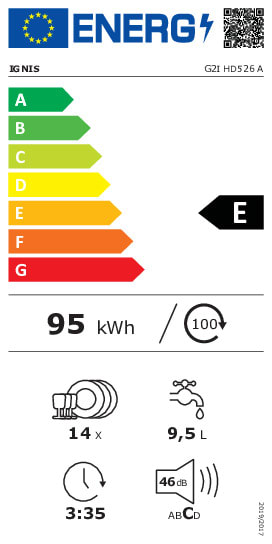 - Ignis Geschirrspüler G2IHD526A, Energieeffizienzklasse E, Energieeffizienz-Spektrum A bis G