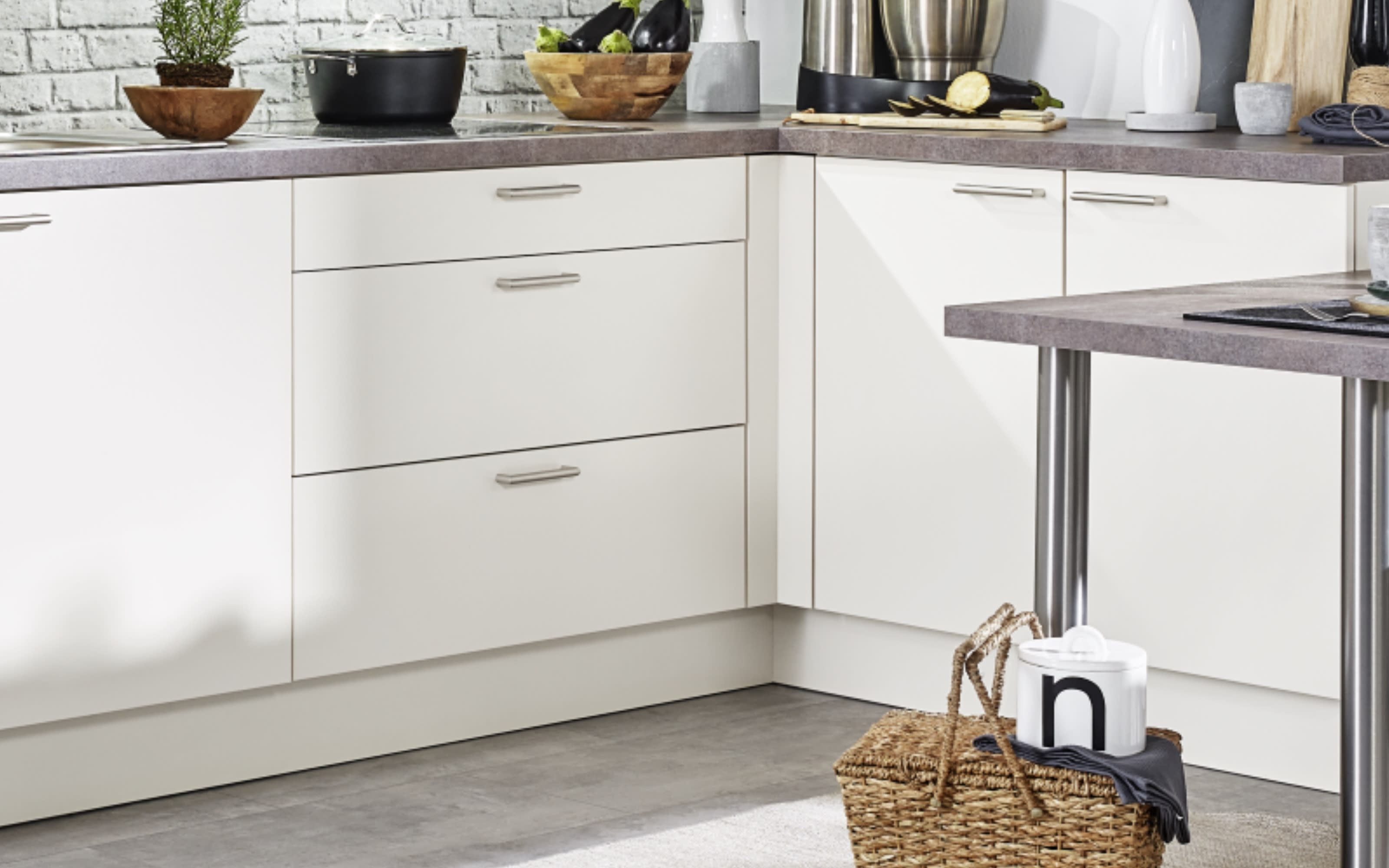 Einbauküche Uno/Meteor, magnolia, inkl. Neff Elektrogeräte