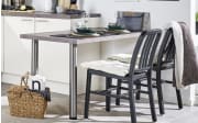 Ausführung Front und Korpus in magnolie, Absetzung, Arbeitsplatte und Tischplatte oxid farbend,