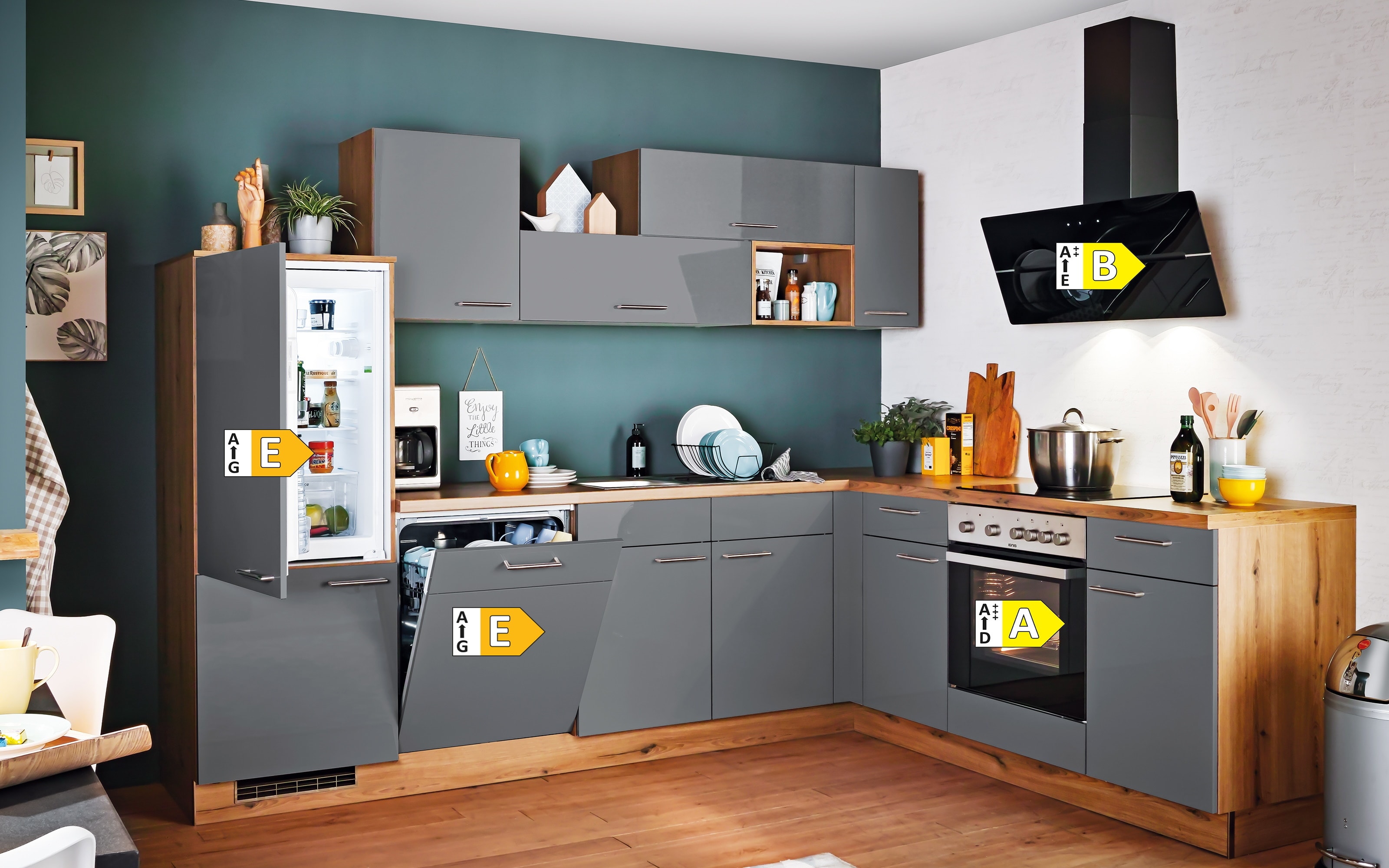 Einbauküche Wida, matt anthrazit, inkl. Elektrogeräte