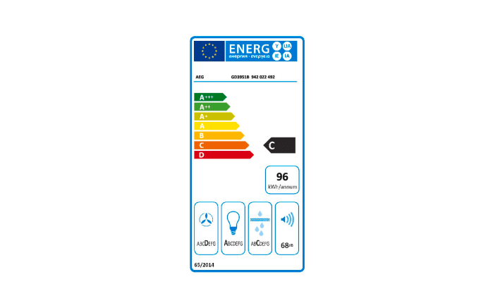 - AEG Dunsthaube GD3951B, Energieeffizienzklasse B, Energieeffizienz-Spektrum A+++ bis D