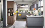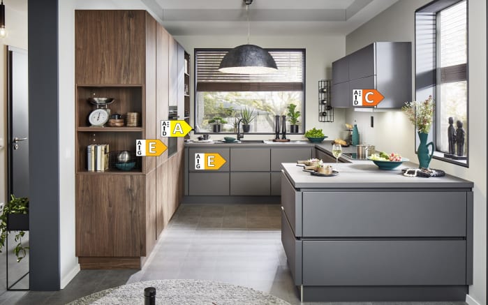 Einbauküche Uno/Bali, perlgrau/Nussbaum Nachbildung, inkl. AEG Elektrogeräte