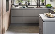 Einbauküche Uno/Bali, perlgrau/Nussbaum Nachbildung, inkl. Miele Elektrogeräte