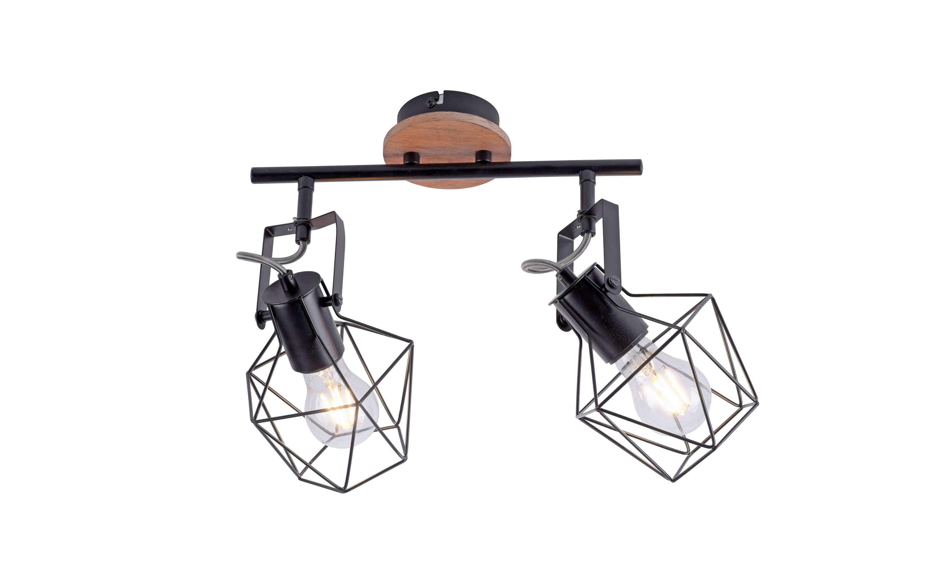 Die Deckenleuchte Jaro besticht durch ihre 2-flammige Ausführung in Schwarz und Naturholz, die eine warme und einladende Atmosphäre schafft. Sie ist für 2 x E27 max. 60 W ausgelegt (nicht im Lieferumfang enthalten), was Ihnen die Möglichkeit bietet, die Lichtintensität und -farbe nach Ihren Wünschen zu gestalten. Ein besonderes Merkmal dieser Leuchte sind die flexibel einstellbaren Leuchtenköpfe, die eine gezielte und individuelle Ausrichtung des Lichts ermöglichen. Diese Kombination aus ästhetischem Design und praktischer Funktionalität macht die Deckenleuchte Jaro zu einer attraktiven Beleuchtungsoption für vielfältige Wohn- und Arbeitsbereiche.