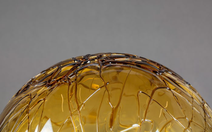 - Amberfarbiger Glasschirm für eine angenehm warme Lichtatmosphäre