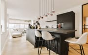 LED-Pendelleuchte Orbit, schwarz/coffee, 8-flammig, 155 cm, inkl. Dimmfunktion