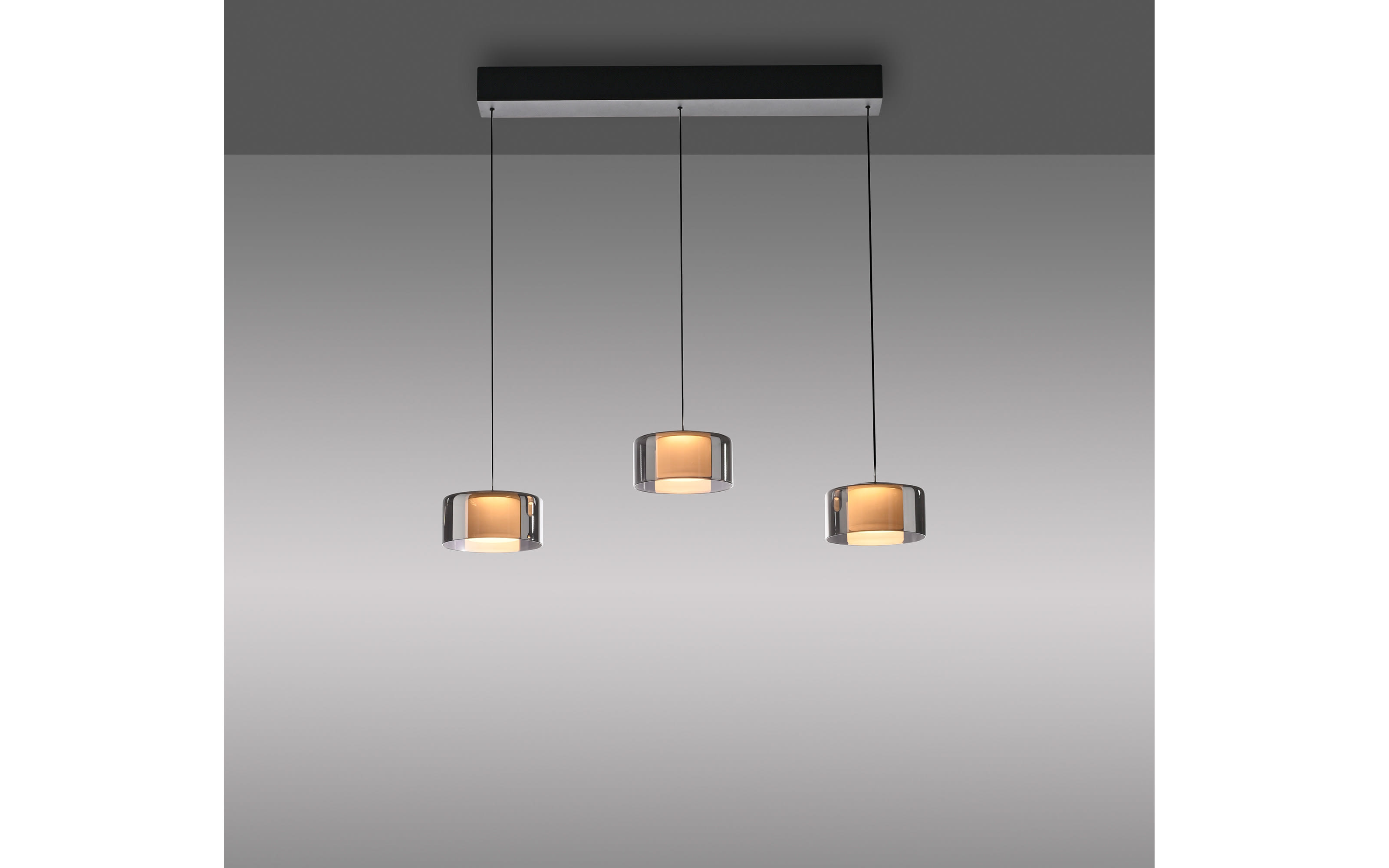 Ausführung in Schwarz mit Lampenschirm aus Rauchglas, 3-flammig, schlichtes und modernes Design für den Ess- oder Wohnbereich,