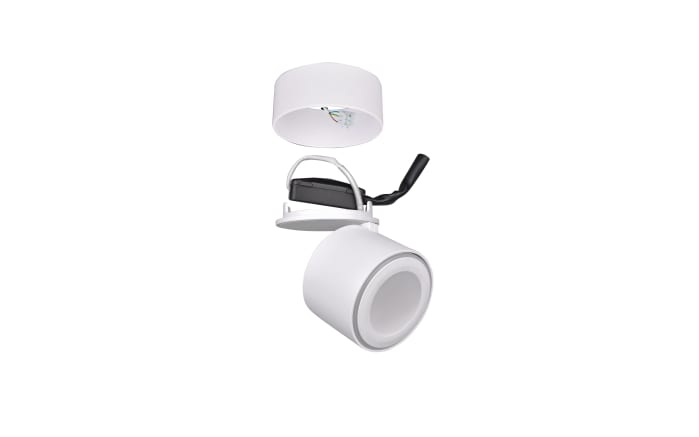 Der LED-Ein-/Aufbauspot Taurus in mattem Weiß ist eine vielseitige und moderne Beleuchtungsoption für Ihr Zuhause. Hergestellt aus Metall, kann diese Spotleuchte sowohl als Einbauleuchte als auch als Aufbauleuchte montiert werden, je nach Ihren Anforderungen. Die Leuchte enthält ein fest verbautes 5 W LED-Leuchtmittel mit einer Helligkeit von 450 Lumen und einer warmweißen Lichtfarbe von 3000 Kelvin. Dieses LED-Leuchtmittel ist energieeffizient und langlebig. Ein besonderes Merkmal dieser Leuchte ist die individuelle Ausrichtbarkeit, die es Ihnen ermöglicht, das Licht gezielt dorthin zu lenken, wo Sie es benötigen. Ein weiterer Vorteil ist die Möglichkeit, das Hauptlicht und den äußeren Lichtring getrennt voneinander zu schalten. Dadurch haben Sie die Flexibilität, die Beleuchtung nach Bedarf anzupassen und verschiedene Lichteffekte zu erzeugen. Bei einer Verwendung als Einbauleuchte ist ein Deckenausschnitt von 8 cm notwendig.